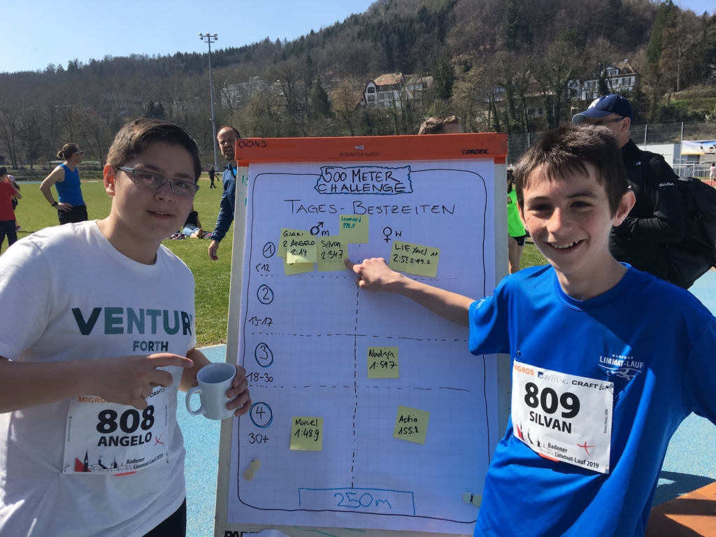 Badener Limmatlauf 2019 Am 30. März 2019 waren Joel, Angelo, Silvan, David, Anastasija und Jasmin am Badener Limmatlauf. Der Badener Limmatlauf war 2,2 km lang. Vor dem Lauf haben wir Rudern ausprobiert. Silvan hat den Tagesrekord gebrochen. Danach hat Angelo Silvans Rekord gebrochen. Danach mussten wir 20 Minuten warten. Nach diesen 20 Minuten sind alle, ausser Anastasija, gerannt. Anastasijas Kategorie startete nämlich erst später. Nach 16 Minuten waren alle wieder zurück und nach 3 Minuten musste Anastasija rennen. Silvan hat den Lauf dann nochmals gemacht, um Anastasija zu begleiten. Danach haben wir unsere Kraft gemessen, sprich, wie stark unsere Arme sind. Anschliessend gingen wir zum Bahnhof und haben ein Eis bekommen von Frau Wormstetter. Und dann haben wir auf den Zug gewartet. Er hatte ziemlich Verspätung. In Brugg hat uns Davids Mutter abgeholt und nach Riniken gefahren.Von Angelo und Joel (6. Klasse)
