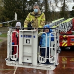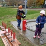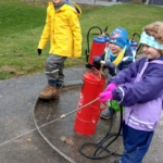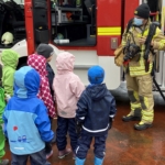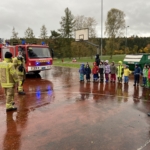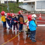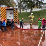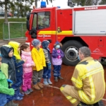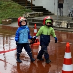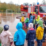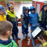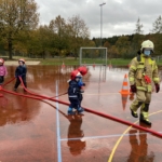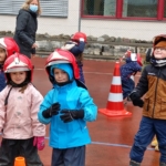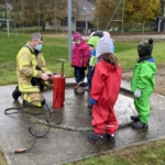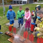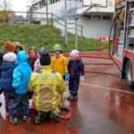 Feuerwehr Brugg besucht den Kindergarten Am Mittwoch, 28. Oktober 2020 besuchten zwei Feuerwehrleute der Feuerwehr Brugg die Kindergartenkinder. Bereits die spektakuläre Anfahrt des Tanklöschfahrzeugs und der Drehleiter auf den roten Platz der Schule, wurde von den Kindern gespannt beobachtet. Danach erhielten wir eine kurze Einführung, in der wir erfuhren, was in einem Feuerwehrauto alles verstaut ist. Schliesslich durften die Kinder vieles selbst ausprobieren. Mit Feuerlöschern konnten sie auf Übungstafeln spritzen, mit der Drehleiter hochfahren und die Aussicht über Riniken geniessen und schliesslich mit Feuerwehrhelmen ausgerüstet eine kleine Feuerwehrübung absolvieren, in der sie Bälle von Pylonen runterspritzen konnten. Die Kinder waren voller Eifer dabei. Dieser Tag wird ihnen bestimmt noch lange in Erinnerung bleiben.