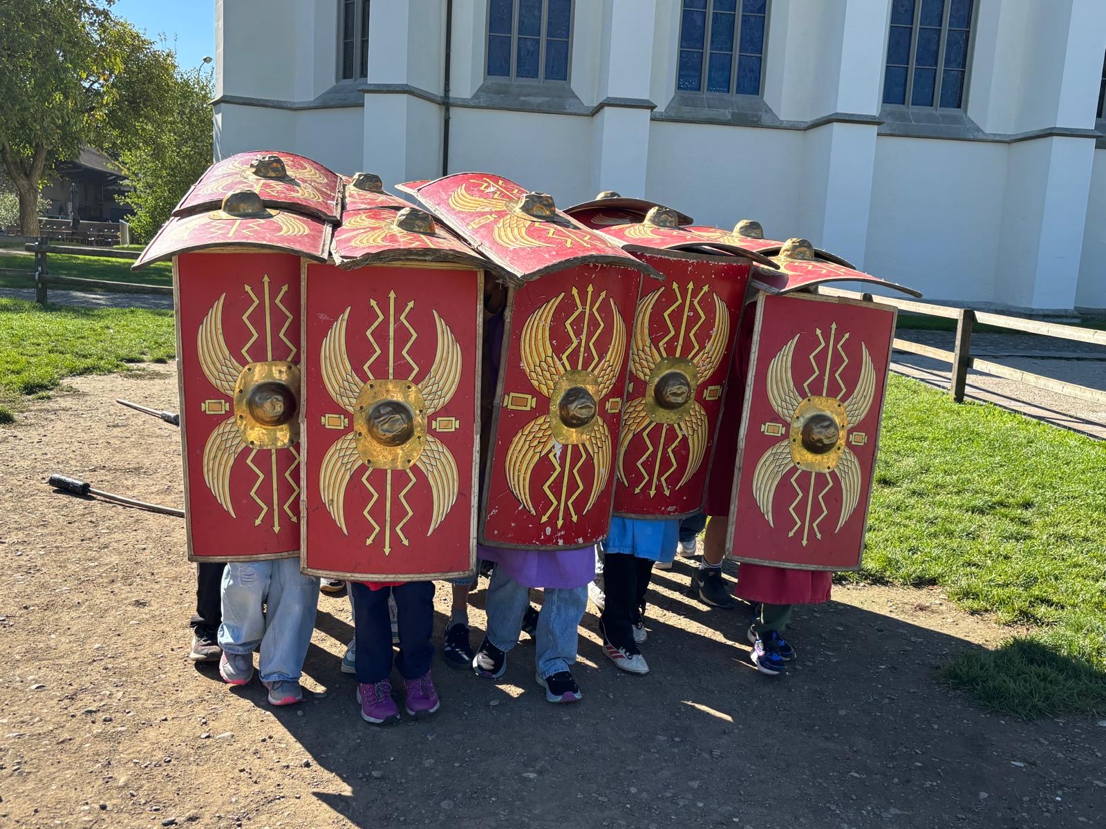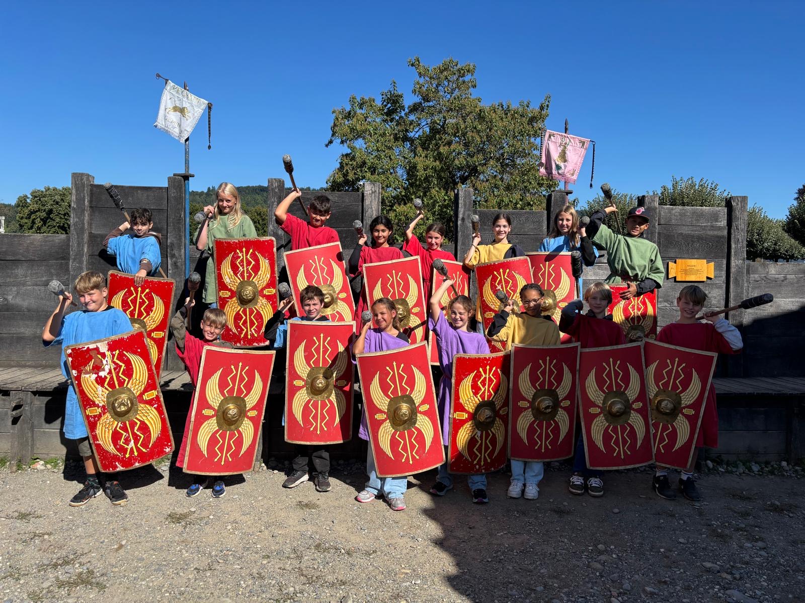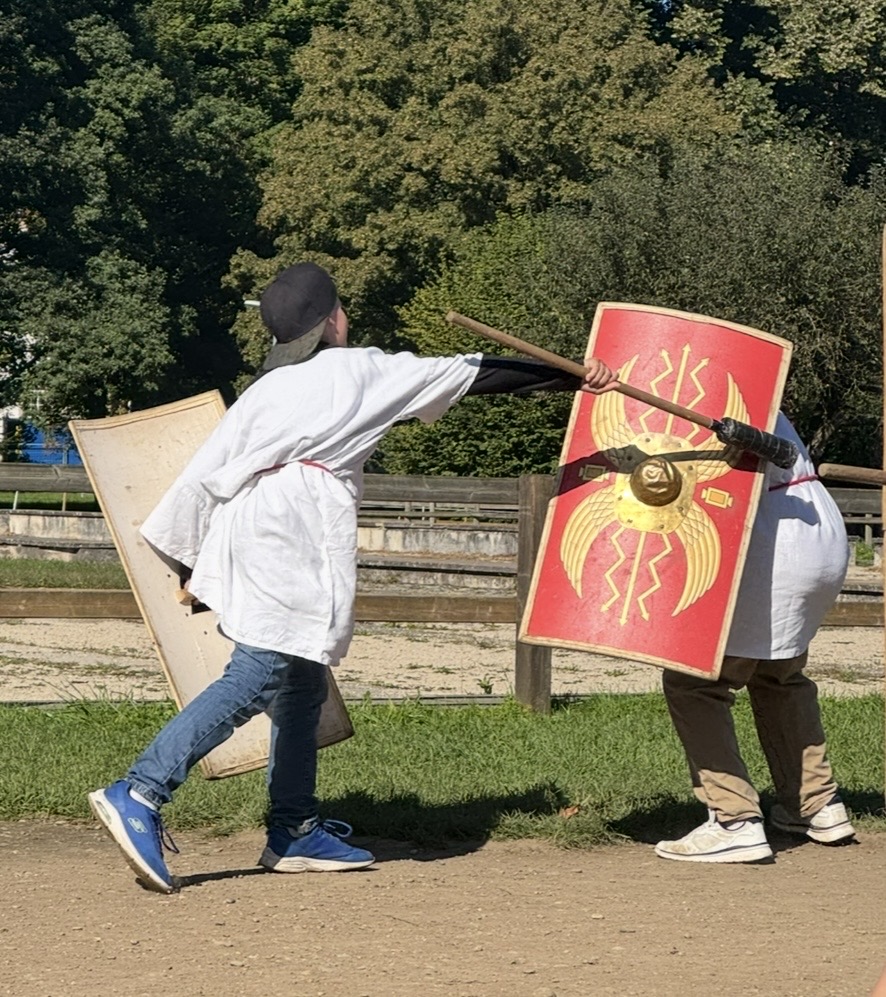 Die beiden 5. und 6. Klassen besuchten zum Abschluss des NMG-Themas «Römer» Ende September einen Legionärs-Workshop in Windisch. Die Schülerinnen und Schüler durften hautnah erleben, wie die Legionäre ausgebildet wurden und im Legionslager gelebt haben. Zudem durften sie selbst verschiedene Kamptechniken unter Anleitung einer Römerin ausprobieren.