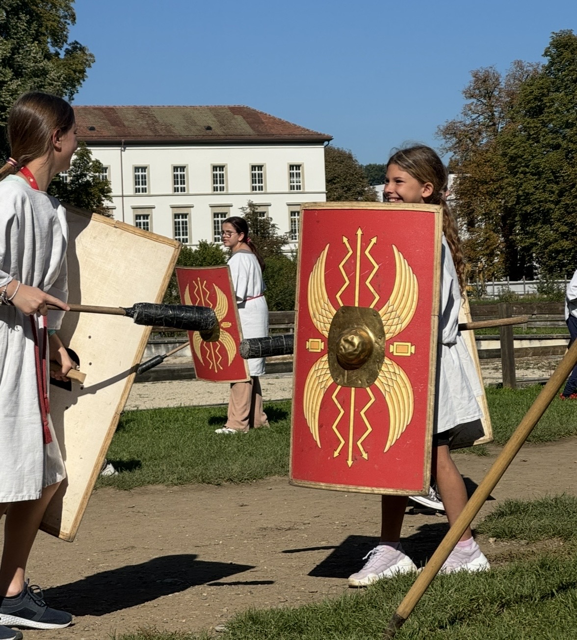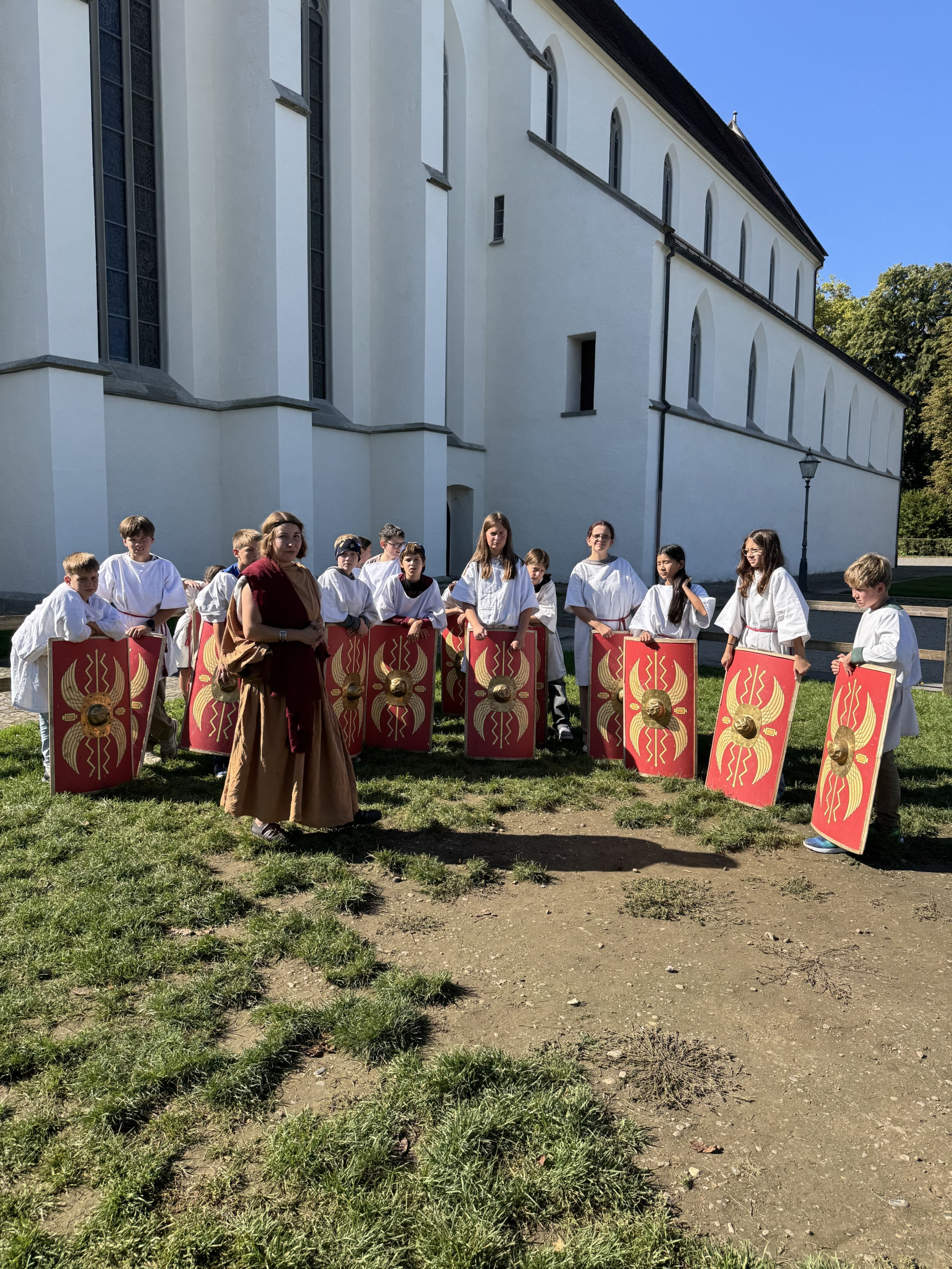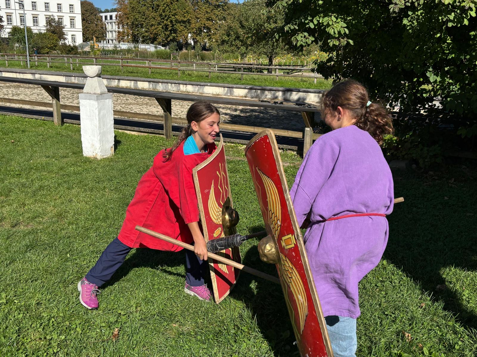 Die beiden 5. und 6. Klassen besuchten zum Abschluss des NMG-Themas «Römer» Ende September einen Legionärs-Workshop in Windisch. Die Schülerinnen und Schüler durften hautnah erleben, wie die Legionäre ausgebildet wurden und im Legionslager gelebt haben. Zudem durften sie selbst verschiedene Kamptechniken unter Anleitung einer Römerin ausprobieren.