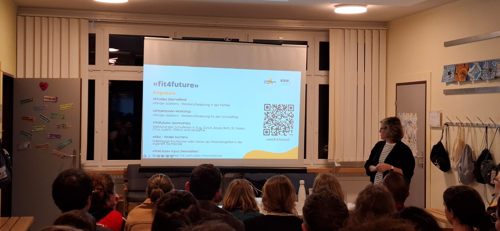 Elternanlass 12.03.2026 «Kinder stärken» Resilienzförderung in der FamilieAm 12. März 2026 führte die Geschäftsführung Schule einen weiteren Elternanlass durch. Beim Thema «Resilienz» (vereinfach Widerstandskraft) führte die Referentin Melanie Berger die 35 Eltern und Lehrpersonen in einem spannenden Vortrag, aufgelockert mit Übungen durch das Thema und wie Kinder mit der resilienischen Sprache gestärkt werden können.Diese Elterninformation wurde ermöglicht durch fit4future, der grössten Gesundheitsinitiative der Schweiz, bei welcher unsere Schule seit Herbst 2024 mitmacht.Für weitere Themen für künftige Elternanlässe dürfen Sie uns gerne ansprechen. Wir sind offen für Themen von Ihrer Seite. Elternanlass 12.03.2026 Elternanlass 12.03.2026 Elternanlass 12.03.2026 Elternanlass 12.03.2026 Elternanlass 12.03.2026 Elternanlass 12.03.2026